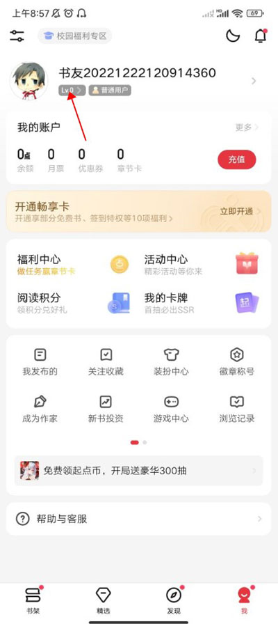 2、登录成功之后,在自己的书架这里有免费赠送的小说