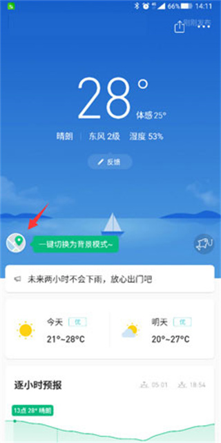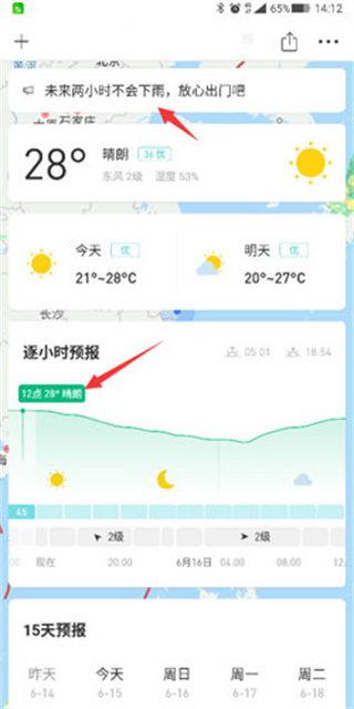 彩云天气可以精准的预报每一个小时的天气,可以精准到15天内每个小时的预报。