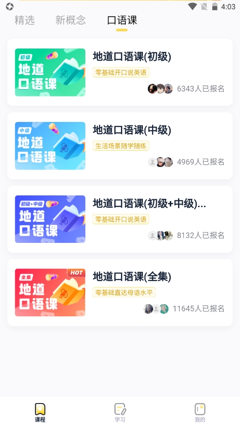 2、其中还包括了新概念课程以及口语课程;