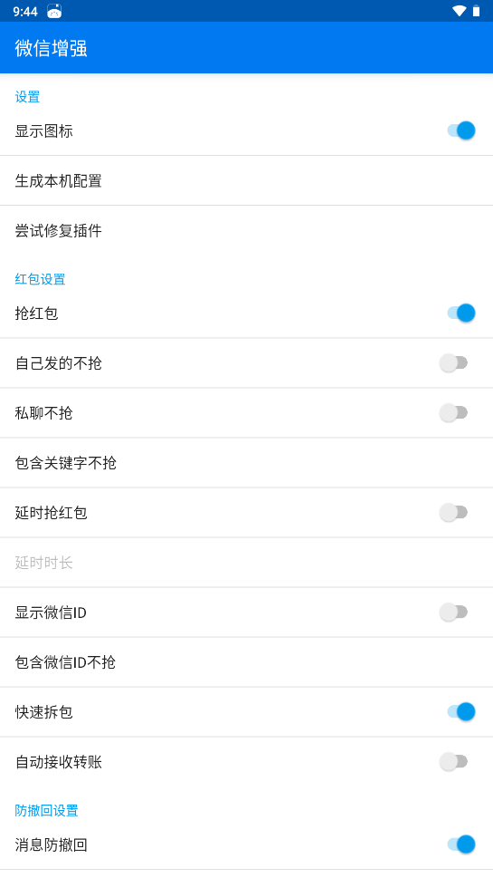 微信增强插件是由大神firesun制作的一款微信辅助工具app。相信大家都很好奇为什么有些人总能一个不落的抢到所有红包,他们真的是一直盯着微信吗?今天小编为大家带来的这款辅助工具就可以自动抢红包、接收转账,还可以设置延时抢等等,让其他人误以为你是凭手速抢到的红包,除此之外,这款辅助工具还可以突破朋友圈发圈9张图片的限制以及查看被撤回的消息,有需要的用户欢迎在本站下载哦!
