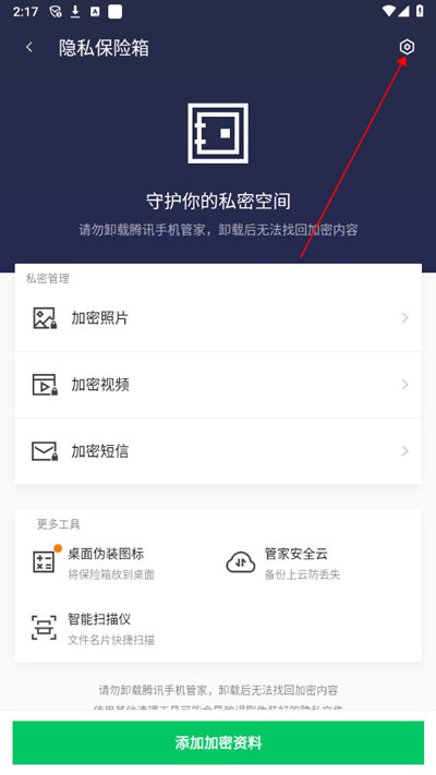 可以在软件主界面点击右下角我的,然后重新登录账号,如果保险箱的照片还没有恢复的话,可以点击隐私保险箱右上角的设置按钮,查看当前绑定的账号是否是你保存照片时绑定的账号,如果不是的话可以尝试切换绑定账号