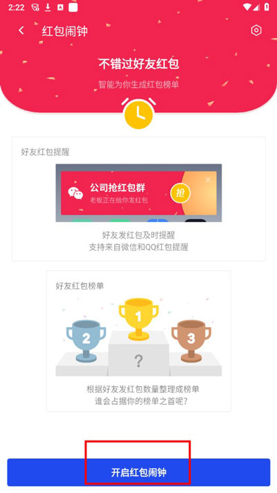 3、点击开启红包闹钟,然后根据提示进行设置,之后就能成功开启红包提醒,不错过任何红包啦