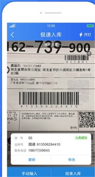 2、支持扫描运单号和手机号,大部分运单扫描后会直接带出手机号,结合OCR识别技术,入库效率更高。