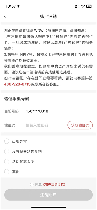 肯德基app怎么注销?