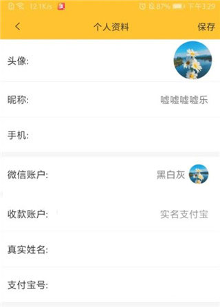 1、下载并安装米多赚钱app,打开进入点击头像--个人资料,任意选择绑定一个提现的方式