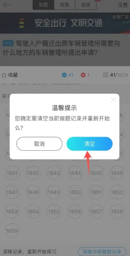 2、拉到题目最后面,点击清空当前做题记录选项。
