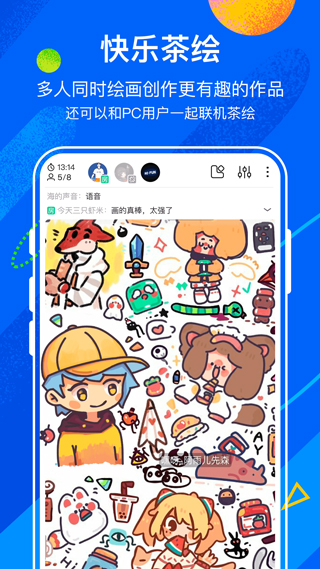 手机指绘和电脑板绘可在同一张画布同时绘画,打通设备壁垒。和朋友一起边聊边画,手指与画笔的切磋,迸发更多有趣的创作。拿起手机就可以和坐在电脑前的小伙伴一起在一张画布上快乐摸鱼创作吧!
