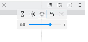 如果想要移动对称轴,可以点击虚线中灰色的小圆点,然后拖动即可,如果想要锁定当前对称轴,点击工具栏中的锁图标,这样对称轴就无法被移动了。