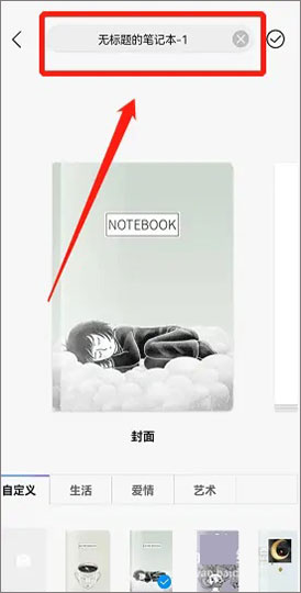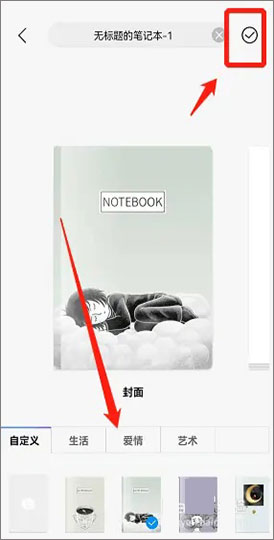 3、选择一个图案作为笔记的封面,并选择右上方的打勾图标点击进入。