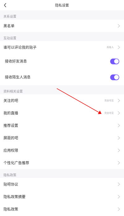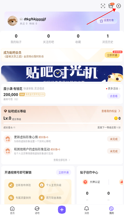 打开百度贴吧App我的页面,点击【设置】选项进入;