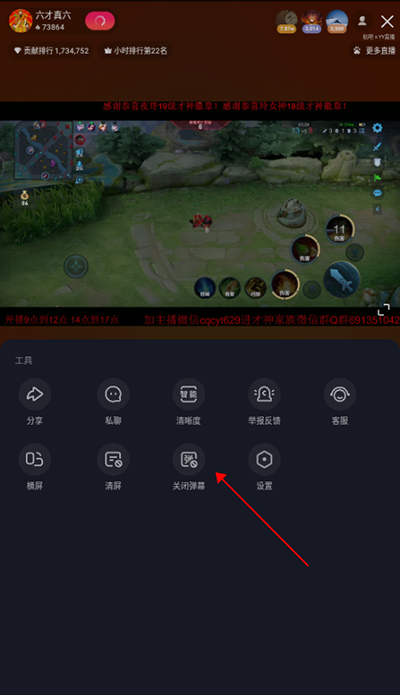 3、然后在具体主播界面中找到并点击选项内的功能按钮;