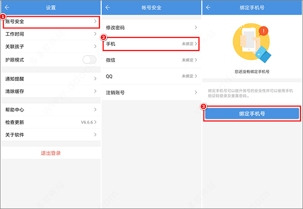 登录APP,点击下方导航栏中“我”,点击“设置”—“账号安全”,点击“手机”—“绑定手机号”,输入手机号及验证码即可进行绑定。