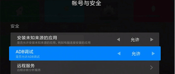 1、首先电视开启ADB调试功能:一般路径是电视设置-安全-adb调试(需要先调出开发者模式才能开启abd调试:调适路径百度一下,一般是连续点击5次版本号)