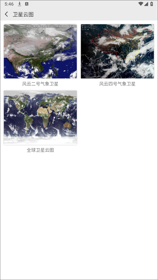 2、第二步:点击“卫星云图”,进入卫星云图列表页;