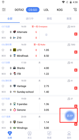【即时比分 - 快、准、全】— DOTA、LOL、CS:GO等多款游戏赛事
