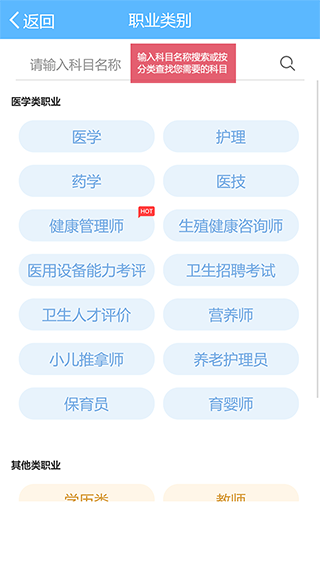 3、搜索科目关键词 或者 通过分类查找切换您需要的科目