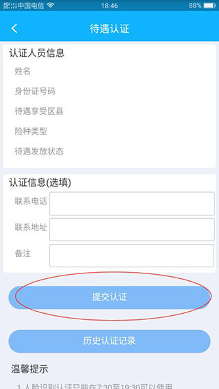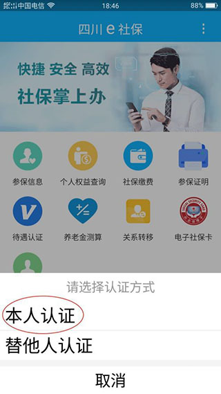 2、登陆后,点击“待遇认证”,可选择“本人认证”或“其他人认证”,如为他人认证请输入身份证号码;