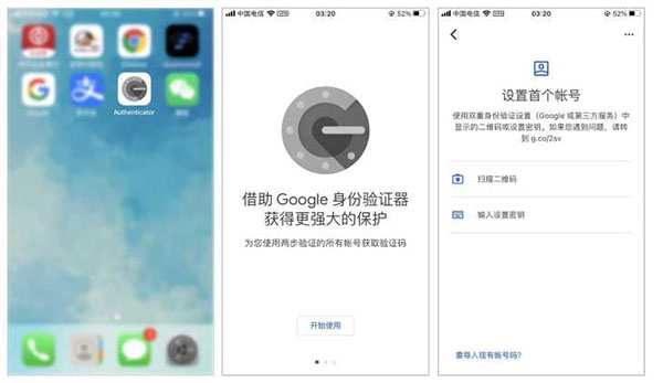 2、安装谷歌authenticator完成后,对该谷歌身份验证器进行配置