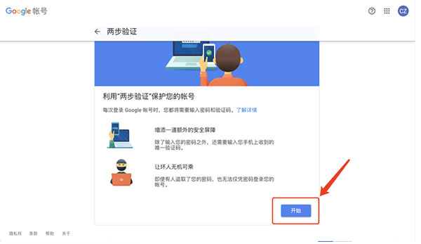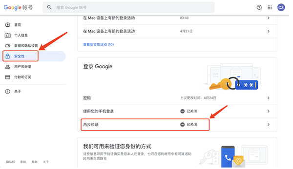 第一步.登录谷歌账号后再打开:myaccount.google.com/?hl=zh-CN 这个网址将语言切换成中文,而后找到"安全性"→"两步验证"。