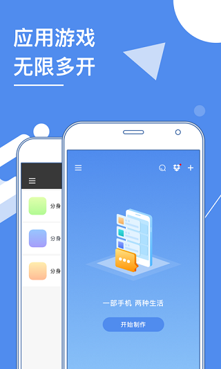 1、支持更多应用游戏的多开、双开,使用更稳定、快速、更安全2、分身独立安装,管理更方便