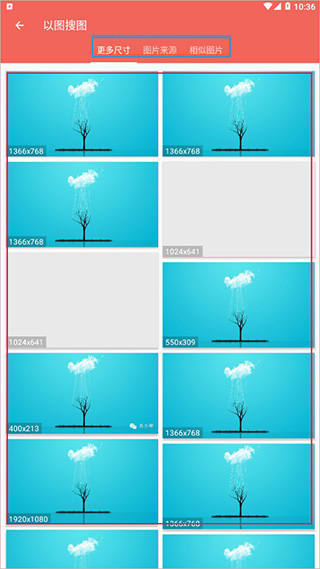 输入关键词内容以后,可以搜索到对应的图片资源;