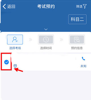 2、这里会展示考试地点,选择你想要考试的那个考场,然后点击“下一步”。