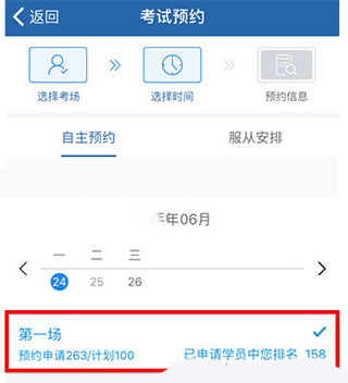5、选中日期后查看申请人数和计划考试人数,没问题点击“预约”,预约后手机会收到验证码,将验证码填写后预约就成功了,显示“受理中”,在考试前3-5天会通知你成功或失败。