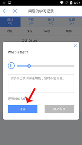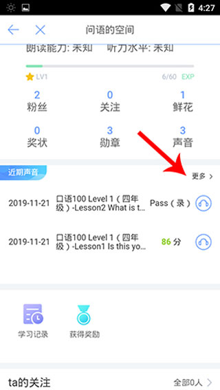 口语100作为一款学习英语的软件,其中有非常多优秀的作品,这些作品值得鼓励,鲜花便是最大的肯定,接下来的步骤就是怎么送鲜花的讲解。1、首先你需要进入到他人的学习空间。