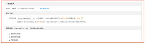 (6)选择送货方式及发票信息 ;