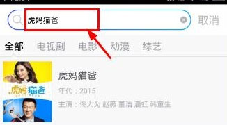 2、在搜索栏输入您想看的视频,例如虎妈猫爸,就会有视频资源,点击进去
