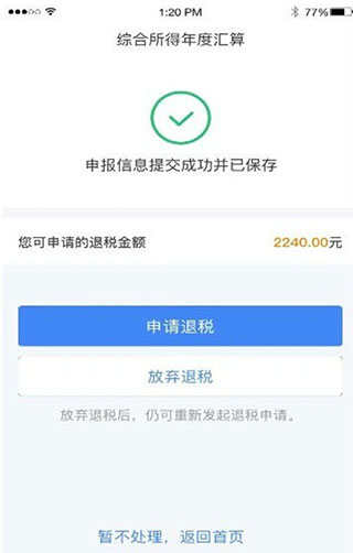 为方便纳税人获取退税,综合所得全年收入额不超过6万元且已预缴个人所得税的,税务机关在网上税务局提供便捷退税功能。纳税人可以在2021年3月1日至5月31日期间,通过简易申报表办理年度汇算退税。