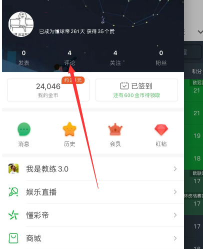 进入个人中心在懂球帝首页点击左上角的头像。
