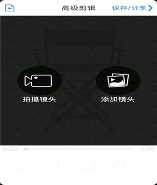 打开小影后,会发现如图所示的几个区域。基本上所有功能都可以在 “制作视频”中的“高级剪辑”中完成