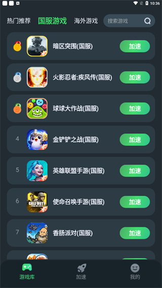 4、点击上方【国服游戏】可以查看国服游戏加速排名
