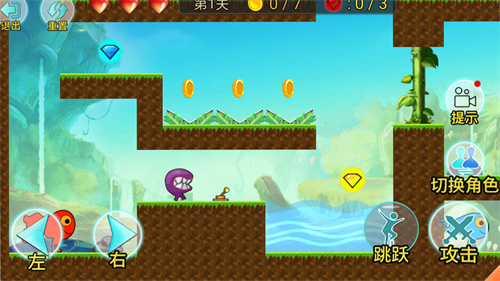 2、非常火爆的冒险,设计有趣的冒险,在界面上控制,设计很多游戏关卡,选择不同的角色前进。