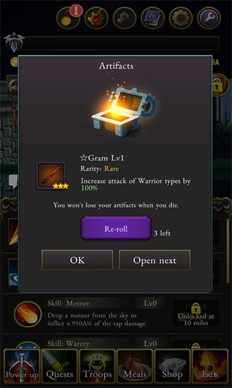 士兵死亡后可无数次复活,但玩家自己死亡后,除了古代遗物会保留外,你将失去士兵和钱币等资产,并从最初的森林重新开始。