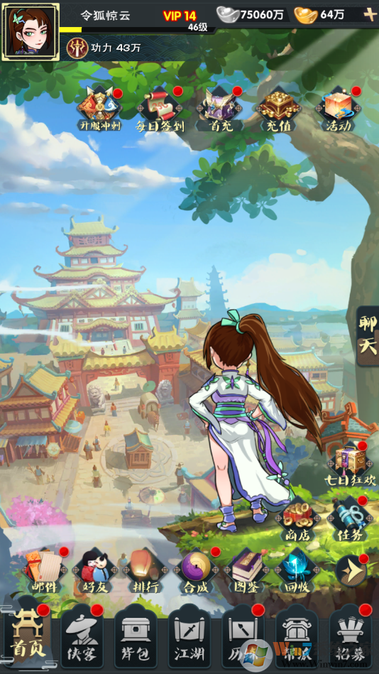 首充礼包内容:元宝*15000、随机江湖秘籍*1、灵玉*500、宝物精华*1000;