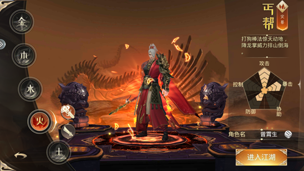 游戏的角色包括丐帮,唐门,峨眉,少林,武当5个职业