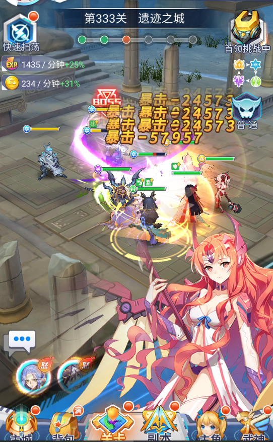 关卡是英雄大大们升级等级和活动金币重要来源之一鸭,每击杀完一定数量的小怪就会进入首领挑战,挑战成功可以获得高额的经验和金币加成。