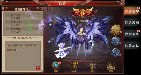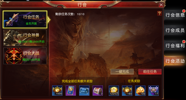 玩家通过加入行会或创建行会,进入行会后可自由参与行会任务和活动,获得丰厚的行会奖励。