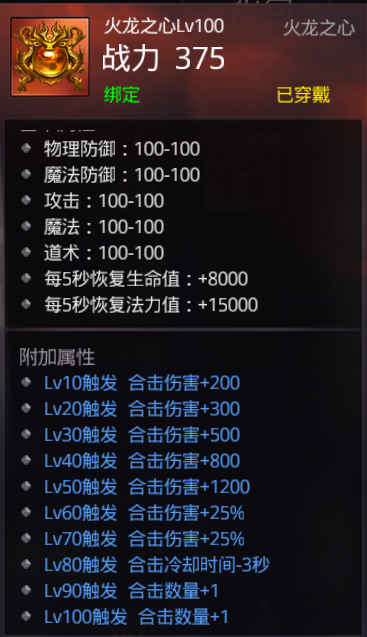 英雄可与玩家能够释放强大的“合击”技能——合击技能可以通过升级英雄的火龙之心成长,初始的合击技能只有1次攻击,火龙之心升级到满级后可获得额外的2次合击;