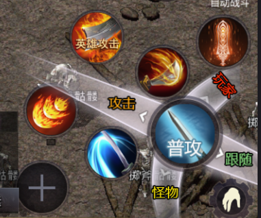 玩家通过点击“英雄攻击”按钮选择攻击目标,点击“合击”技能向目标释放技能。