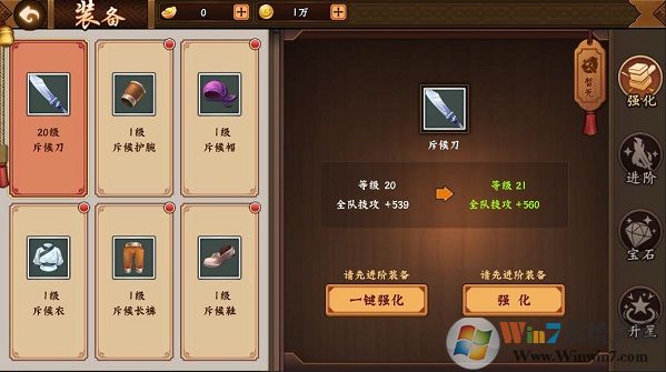 装备在每一个阶段有强化等级上限,一般为20级。这意味着在某个装备强化到20级的时候,需要先对装备进行“进阶”操作才可以继续强化。