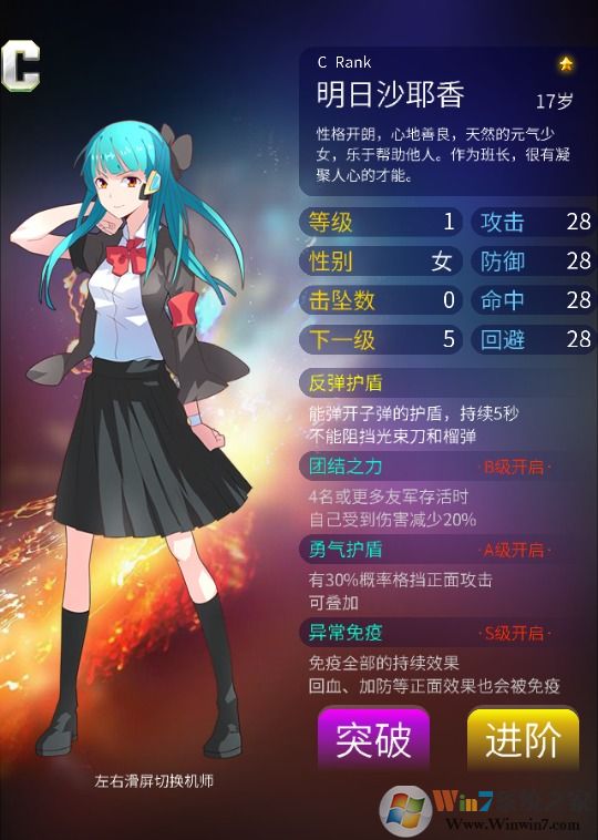 B阶: 耐久低于50%时,移除异常,且攻击短暂提升。