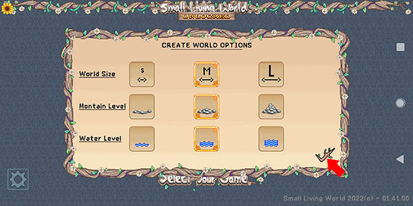 2、之后来到下方决定世界大小、土地资源以及水资源丰富程度,决定之后点击右下方的√号即可进入游戏内
