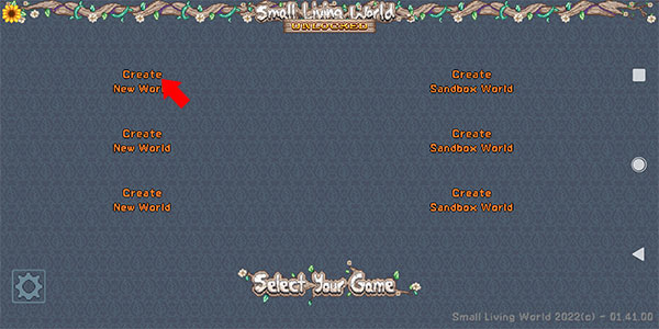 1、下载并打开游戏来到下方主界面,点击上方任意一个Create按钮创建新世界