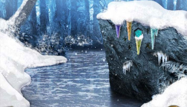 9、来到此图,使用第二颗心,点击雪花按钮,场景变换。如图所示: