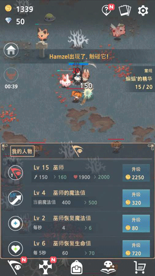 右下方有一个独眼小人,就是我上文所说的商人,他可以卖给你随从,而且会有概率出现关卡里不会出现的随从(主角等级没升上去刷出来的那些绝大多数都是很弱的随从,等级到60级之后可以刷出来好的随从,不过有几个随从好像很强而且前期就能刷出来,但是我自己没研究明白)。一个随从无论价格好坏都是10钻石,而且品阶不一定,有好有坏吧。