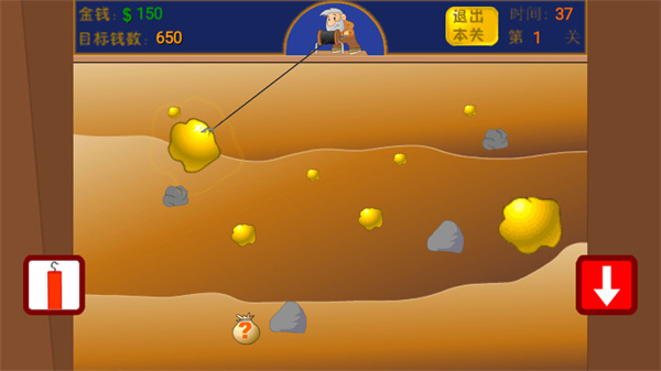 5、操作简单,在钩子摇摆的过程中,瞄准金子,点击屏幕时即会释出钩去抓取金子。