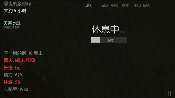 6、不要在晚上赶路,当然如果你体力温度满了,距离白天还有三小时不到也可以出发!